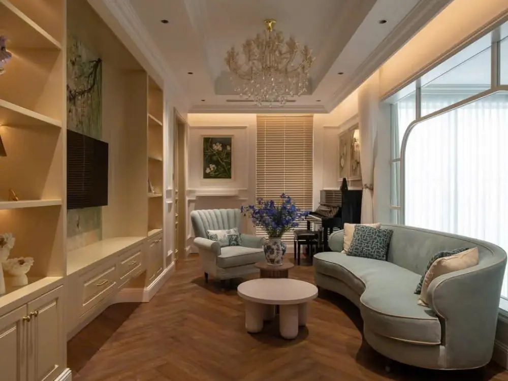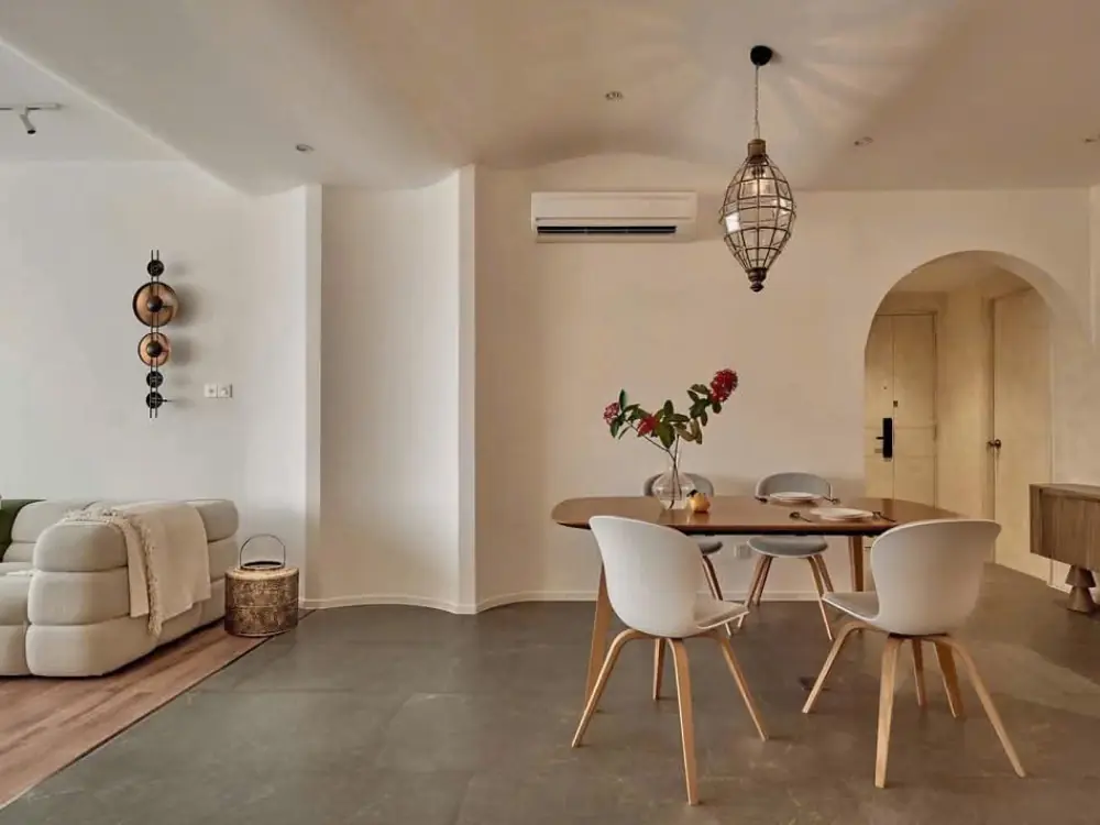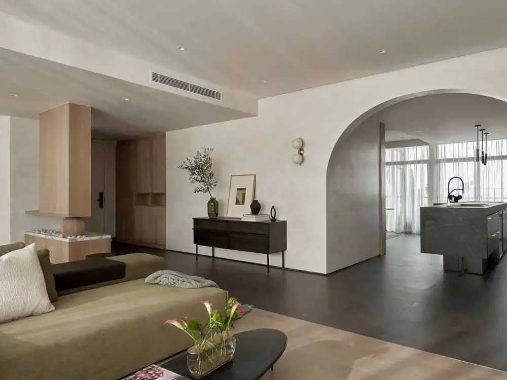 Căn hộ tại quận 7 được thiết kế theo phong cách hiện đại, nổi bật với những đường cong mềm mại và huyền bí, tạo nên một tổng thể không gian đầy cuốn hút và khác biệt. Sự uốn lượn tinh tế trong kiến trúc và nội thất mang đến cảm giác nhẹ nhàng, thanh thoát nhưng không kém phần sang trọng. Phong cách này không chỉ làm tăng tính thẩm mỹ mà còn tạo nên sự chuyển động uyển chuyển trong từng góc nhìn của căn hộ.