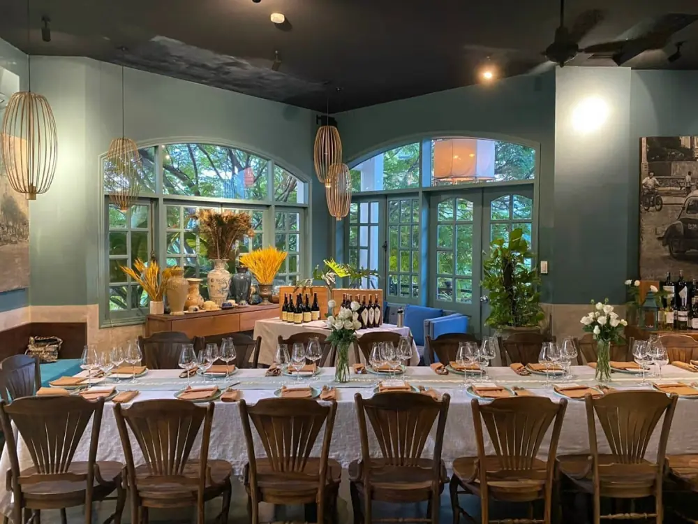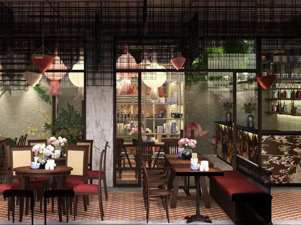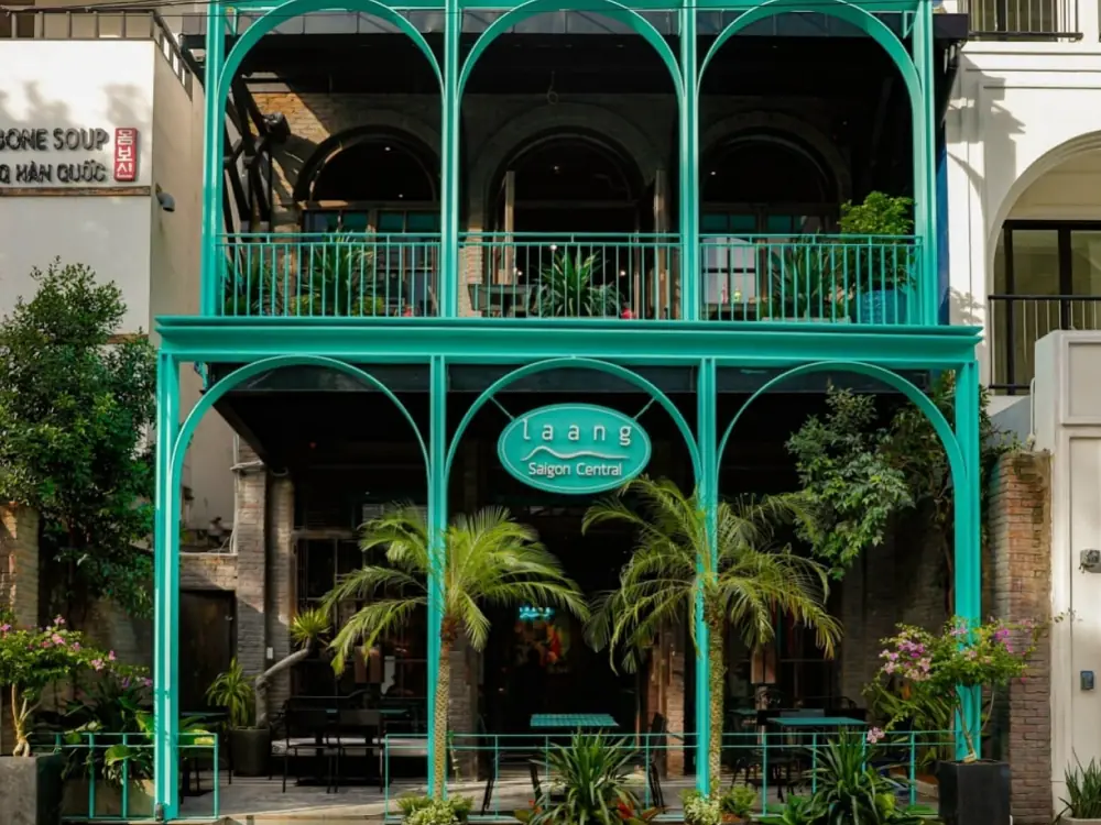 Laang là một trong những mẫu thiết kế nhà hàng ấn tượng tại quận 1, TP.HCM, nổi bật với phong cách tinh tế và không gian xanh mát giữa lòng đô thị sầm uất. Thiết kế chú trọng sự tối giản, sử dụng vật liệu tự nhiên như gỗ, đá và cây xanh để mang đến cảm giác thư giãn, gần gũi. Bố cục mở kết hợp ánh sáng tự nhiên giúp không gian thêm phần thoáng đãng, tạo nên điểm đến lý tưởng cho thực khách yêu thích sự yên bình và sang trọng